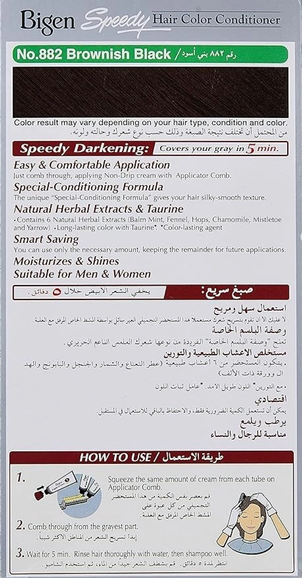 Bigen Speedy Hair Color, 40g + 40g - Brownish Black 882 (Pack of 1)