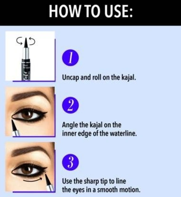 Get beautiful , bold eyes with Blue Heaven Bold Roll On Kajal that is enriched with Vitamin E . The convenient roll on kajal glides smoothly without causing irritation and lasts long . To apply , angle the kajal on inner edge of waterline . Roll along the inside of lower eyelid till the edge in one smooth line
