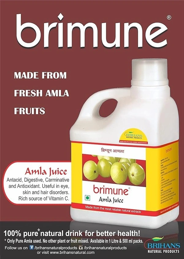 Brimune Amla Juice contains high amounts of Vitamin C. Amla is known to relieve uneasiness or discomfort in the stomach like bloating and gases. Traditionally, Amla is known to be useful to enhance digestion, relieve constipation, purify blood, reduce cough, and benefit the eyes, skin and hair.