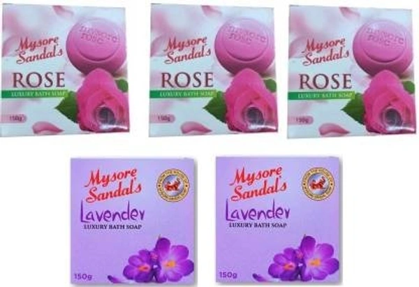 MYSORE SANDAL Rose & Lavender Luxury Bath Soap (5 x 150 g)