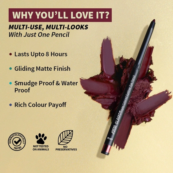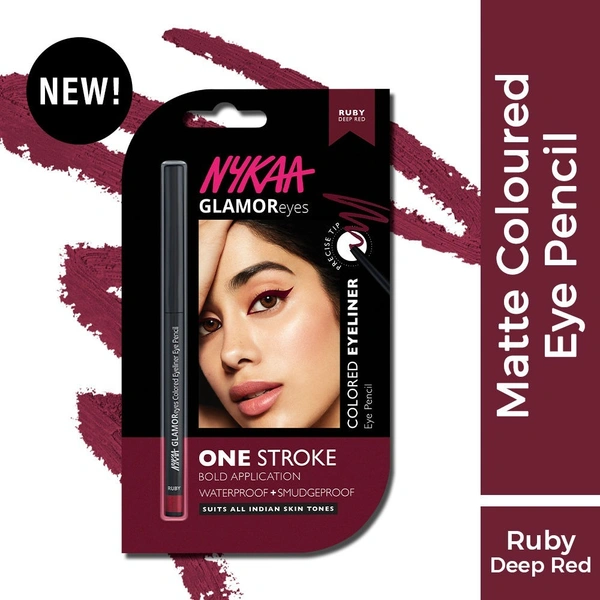 Nykaa GLAMOReyes Waterproof & Smudgeproof Colored Kajal Eyeliner Eye Pencil - Ruby