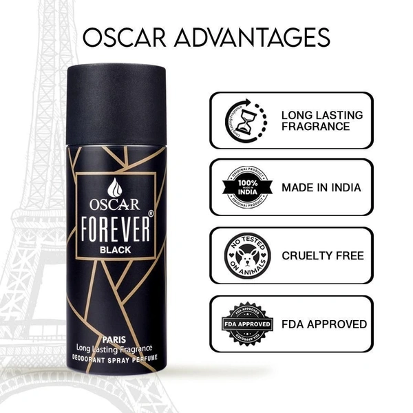 OSCAR FOREVER PARIS BLACK Deodorant Spray - For Men & Women (150 ml)
