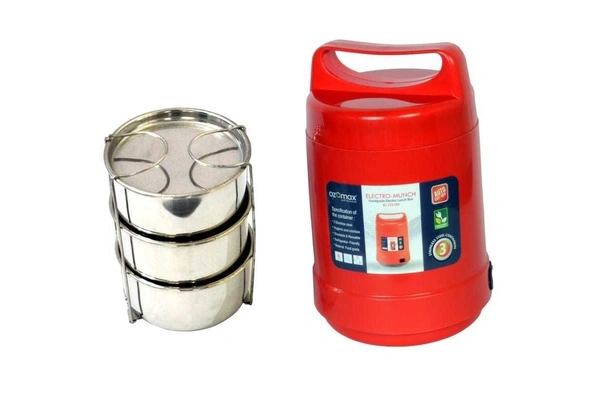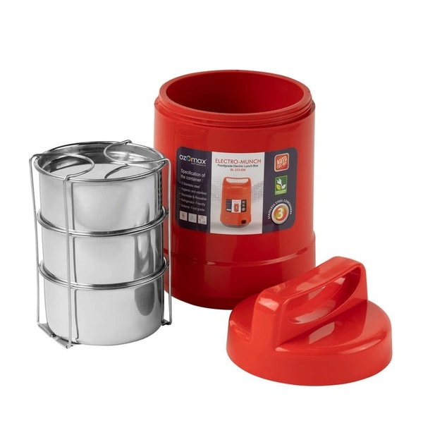 Whether you are in the office or on the go, you can take a healthier, tastier, hot meal with you if you have Ozomax Electro Munch Lunch box with you. One of the most versatile lunch boxes you’ll ever come across. It comes with 3 stainless steel containers. To make your food hot all you need to do is to plug in the cord and your food will be hot within 1 hour.