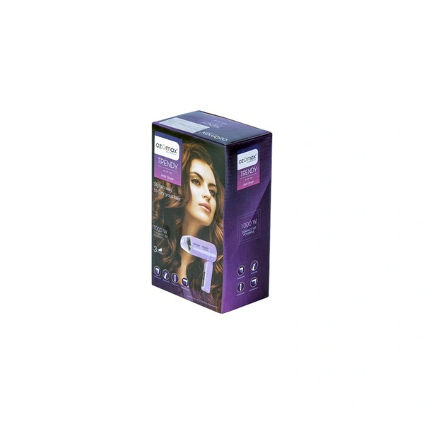 Trendy 1000W Hair Dryer comes with 3 Speed settings which ensures that you get only the right amount of air throw and heat every time you dry your hair. This light weight yet powerful with thermo protection. Ergonomically designed with air concentrator and foldable handle makes it convenient to carry and storage.