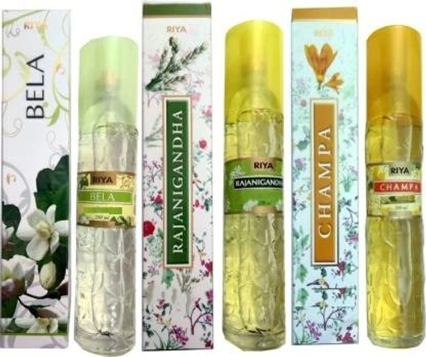 EACH COMBO PACK CONTAINS-1 RIYA BELA AIR FRESHENER 200 ML+1 RIYA RAJANIGANDHA AIR FRESHENER 200 ML+1 RIYA CHAMPA AIR FRESHENER 200 ML