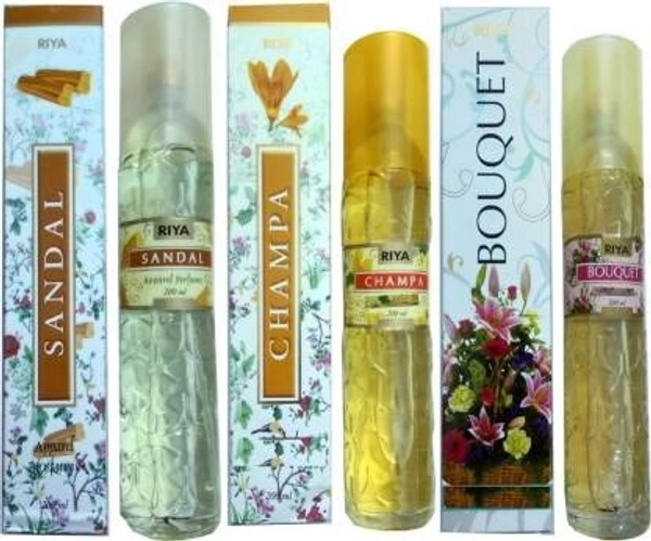 EACH COMBO PACK CONTAINS-1 RIYA SANDAL AIR FRESHENER 200 ML+1 RIYA CHAMPA AIR FRESHENER 200 ML+1 RIYA BOUQUET AIR FRESHENER 200 ML