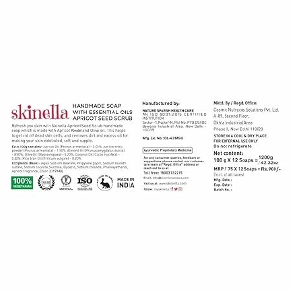 Skinella Natural Handmade Soap with Essential Oils (Apricot Seed Scrub) Remove Dirt, Dead Skin Cells and Make Skin Soft, Supple and Exfoliated 100gm (pack of 3) Amazon's Choice highlights highly rated, well-priced products available to ship immediately.