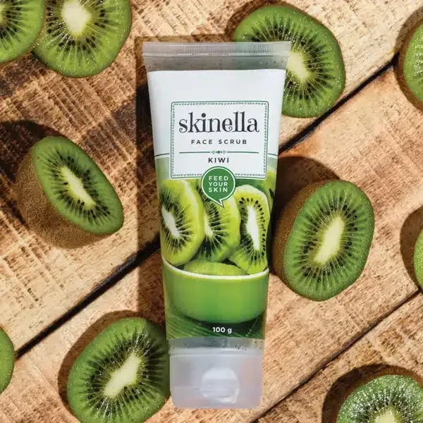 This scrub uses crushed kiwi beads to exfoliate and remove dark spots and toxins. It's suitable for all skin types and can be used once or twice a week. To use, massage the scrub onto a wet face and neck in circles, rinse, and pat dry.