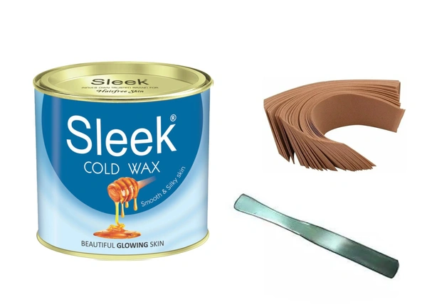 Sleek Cold Wax 600 gm, Waxing Strips (70 Pieces,110 GSM) and 1 Waxing Knife Wax (600 g, Set of 3)