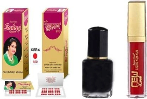 Suhag Supreme Kumkum Round Bindi Box with 15 Flaps Size 4 diameter 6mm Red forehead Bindis + Liner + Red Sindoor combo pack Women Red Bindis (Bengali Bindi ,Marathi , mulgi)