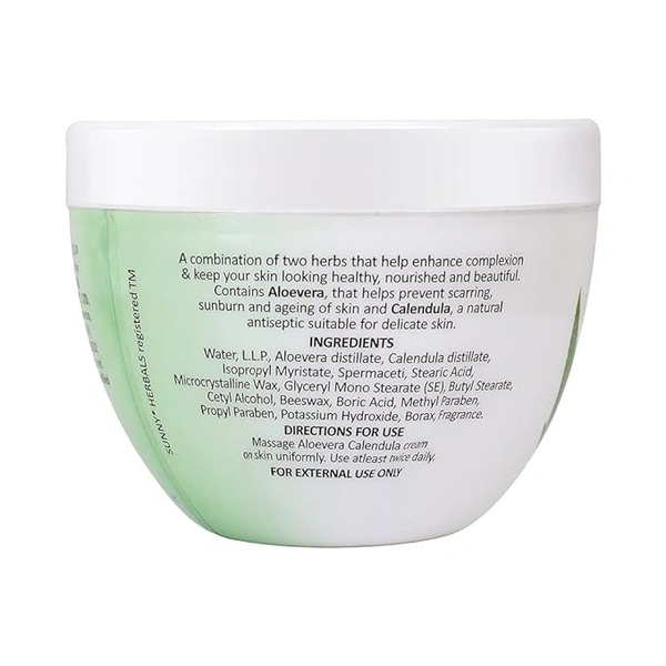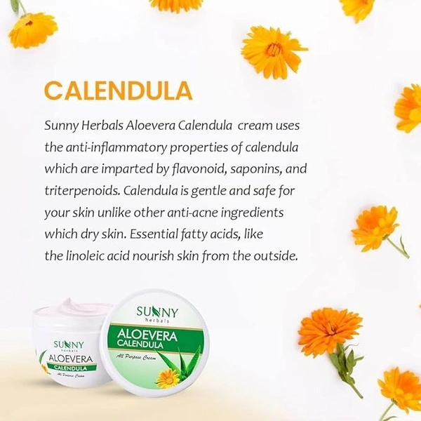 - Sunny Herbals Aloe Vera Calendula Face Cream enhances beauty, moisturizes, and reduces inflammation and redness.